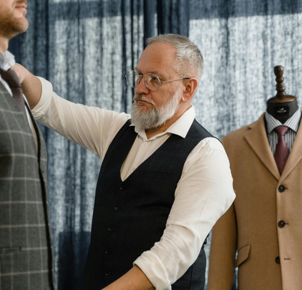Armed with a background in engineering from Georgia Tech, where he earned the esteemed title of President’s Scholar, and the Kellogg School of Management, Michael seamlessly transitioned into the world of professional tailoring. His commitment to excellence saw him enroll in tailoring classes at the Fashion Institute of Technology, gaining a hands-on understanding of the intricacies of the craft.