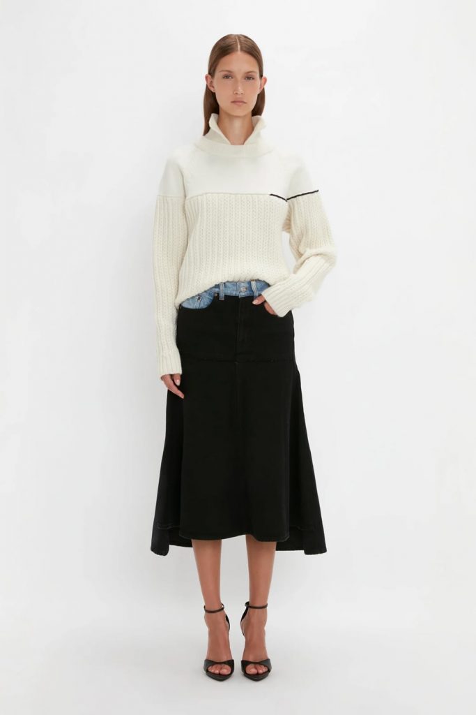 - High neckline complete with ribbed hemline