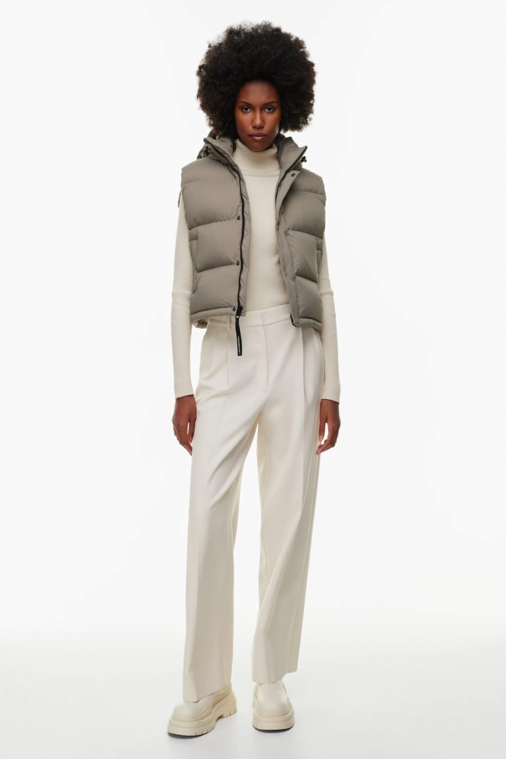 Reimagined in a soft shade of cream, this lambswool Polo Neck has subtle design details such as a contrasting ribbed neck. A saddle shoulder design adds further interest. Wear the neck folded over or upright. Buy this product on https://www.aritzia.com/